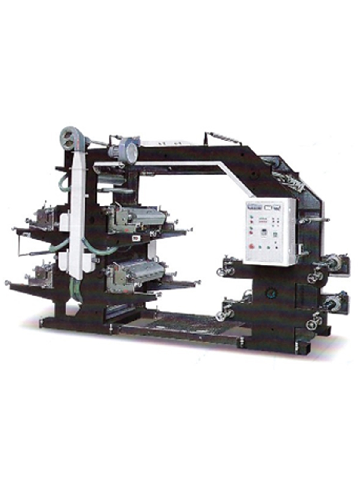 Non Woven Roll to Roll Flexo Printing Machine is ideal for printing various Images, designs and patterns of different colors on nonwoven fabric , plastic & paper etc. This machine is heavy duty and built with cast iron material,available in twomodulesin2 colour & 4colour.